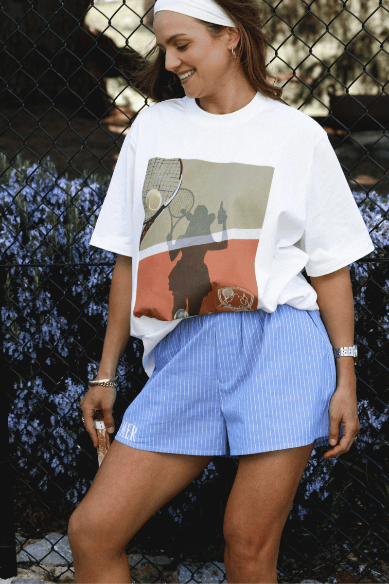Stevie Slouchy Tee - Prussian Blue/Milk Stripe