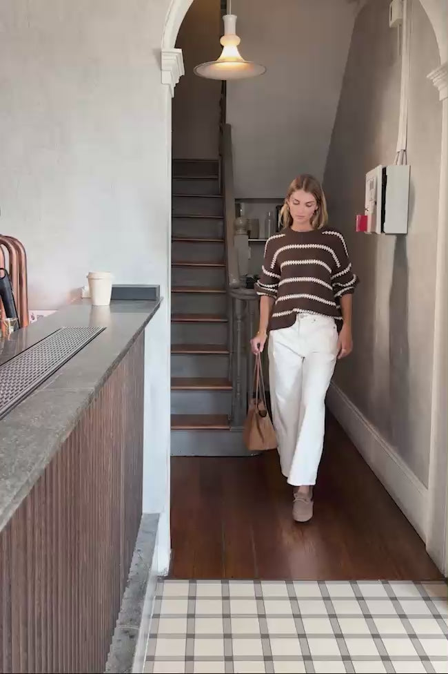 LILA OVERSIZED KNIT CREW - CHOCOLATE STRIPE