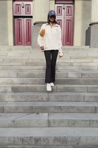 The Lonny Oversized Half Zip Sweat is your versatile staple- perfect for lazy mornings at home, brisk dog walks, or casual cafe catch-ups. Crafted from an organic cotton blend, its oversized fit, pockets in side seams and half zip keep you comfy for wherever the day takes you.