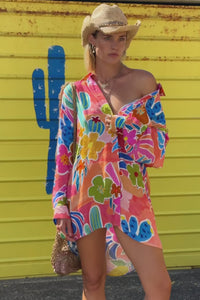 The Margi Hour Shirt Dress in Paloma is a fresh take on a beloved signature print. Designed with an effortless oversized fit, dropped shoulders, and a full button-through front, this style blends relaxed comfort with statement appeal. Wear it loose for an easy, off-duty vibe or cinch it at the waist for a more defined silhouette. Whether styled as a dress or layered open over your favorite pieces, this one is made to turn heads.