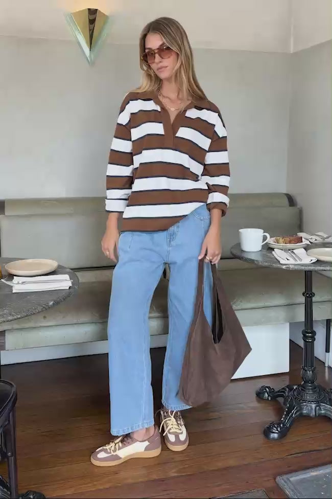 Shelby Slouchy Rugby Top - Toffee/White/Heritage Navy
